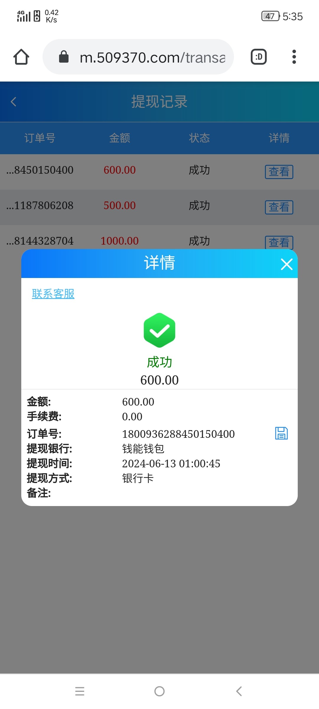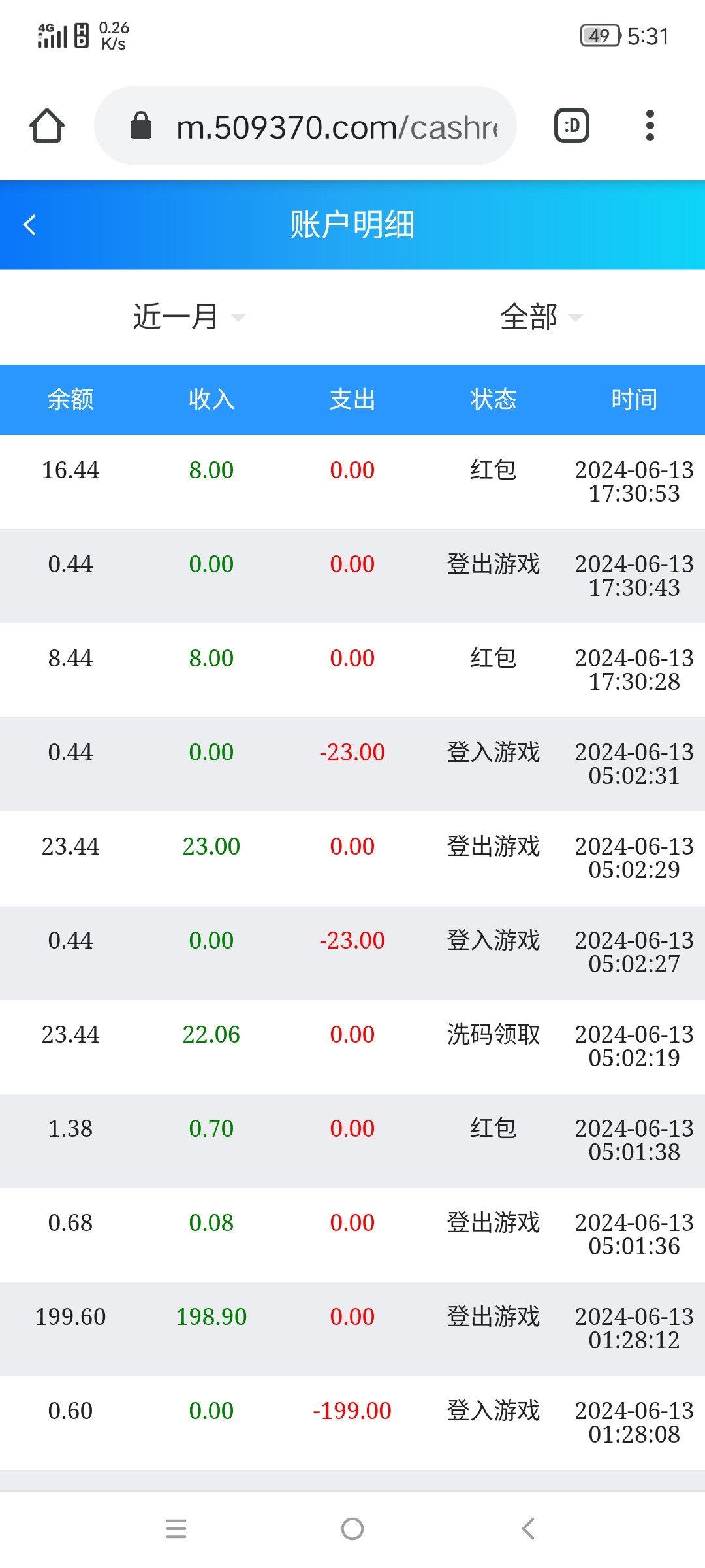 出款情况:自测
