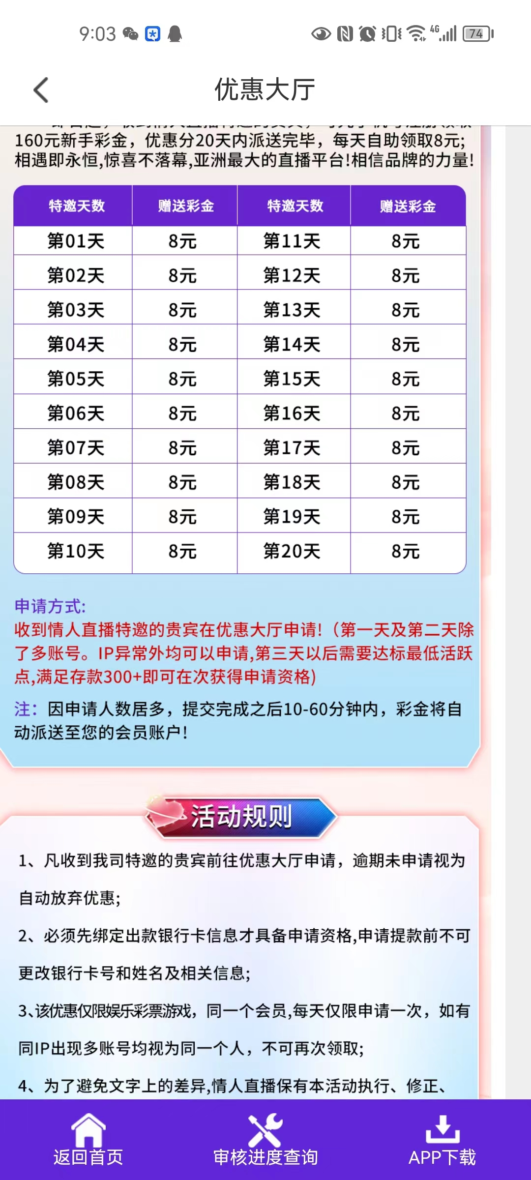 活动详情:注册到优惠页面可以领两天8元(两个小时没送无视),活动写的只能打cp,亲测白嫖100元