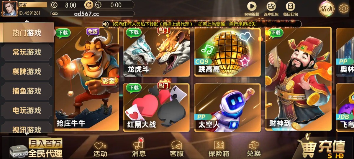 新用户注册绑卡,送8彩金,可以打鱼/PG满100提现,出款自测!