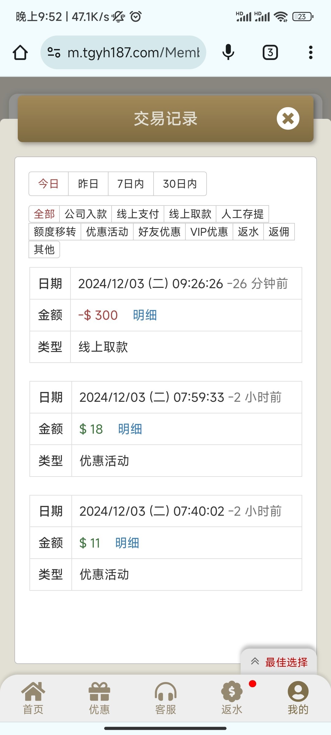 出款情况:自测