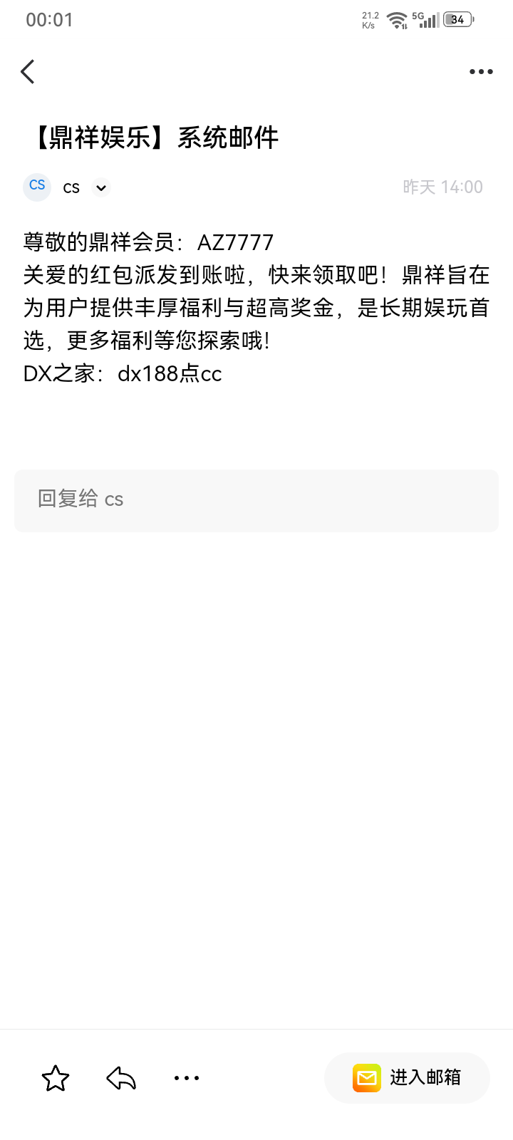 鼎祥邮箱回馈,可以上邮箱看看
