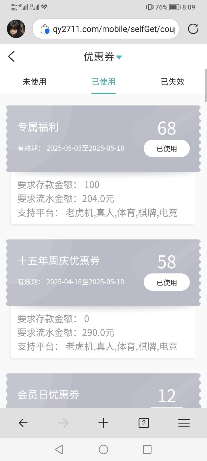 【球友会】发了三张存送优惠券