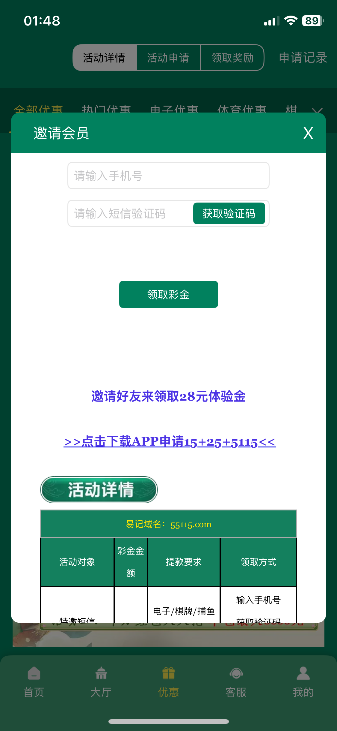 短信验证领了28没打出来,老哥们可以去试试。网址 55115.com
