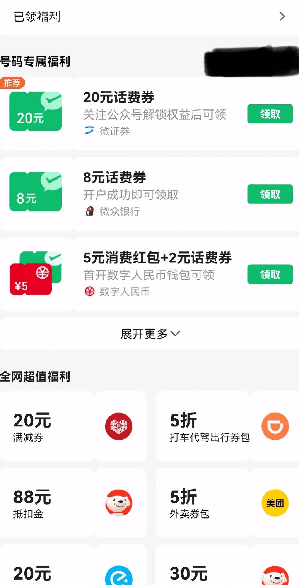 微信打开点 手机充值 进去然后在点左上角的 领话费卷 跟着步骤 开通个微证劵 几分钟就能开通好 就能领了