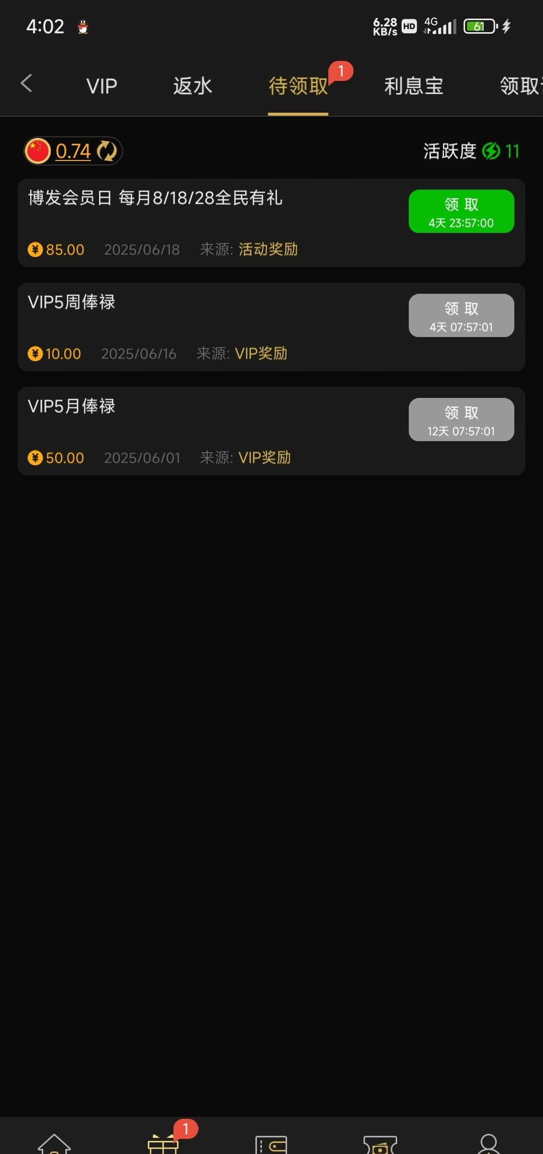 8818.com 现在好像改规则了,我v5每次都是85,之前都是看充值打码送,现在好像是看vip等级送?各位老哥去领了打出来!