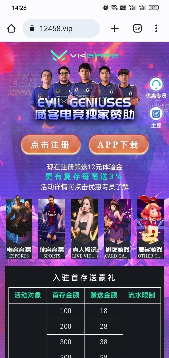 威客电竞,打开网址之后,右上角有一个优惠专员,找她申请,申请电话彩金领取体验金,手机号碰瓷特邀应该大部分都有吧,可以玩体育电竞,一倍流水可以玩别的100提现
