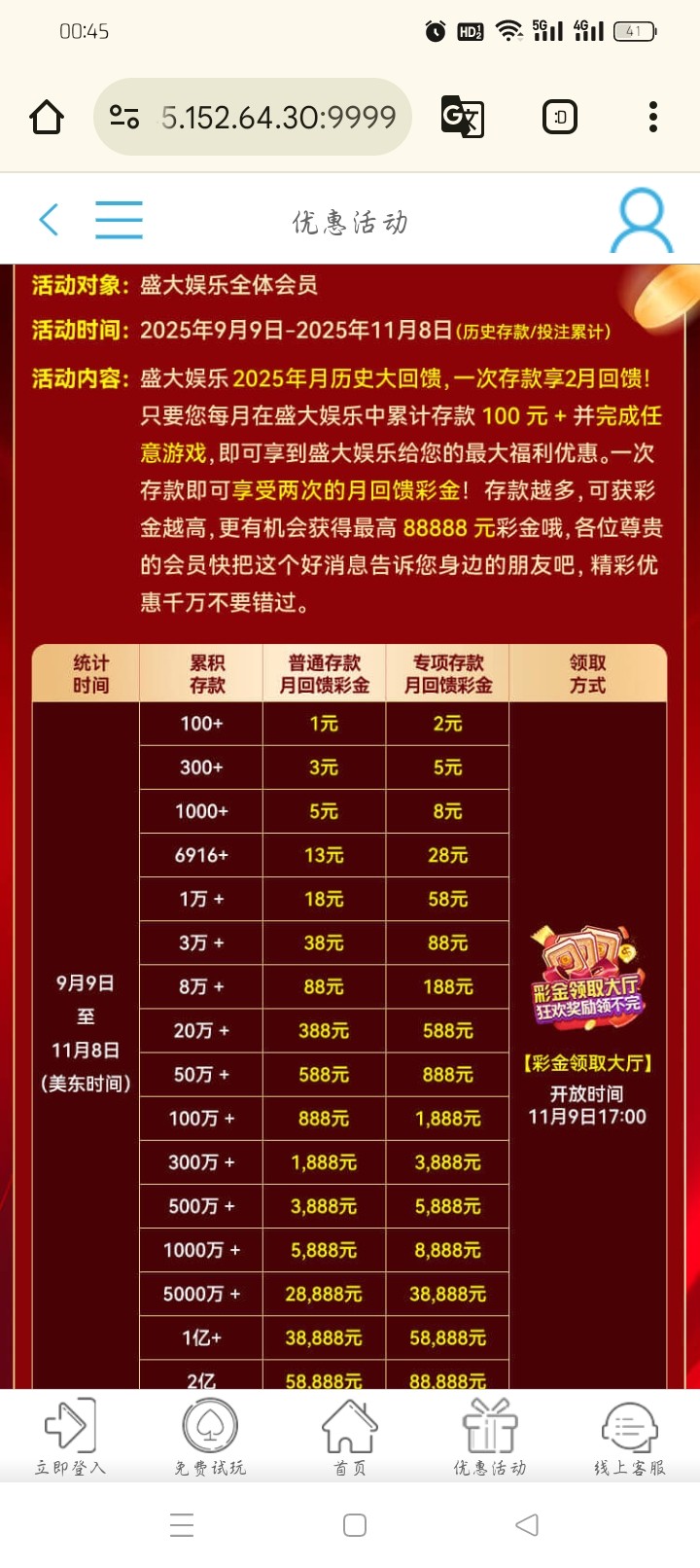 这两个月9月9号到11月8号有充值的去领取,下午5点可以领取