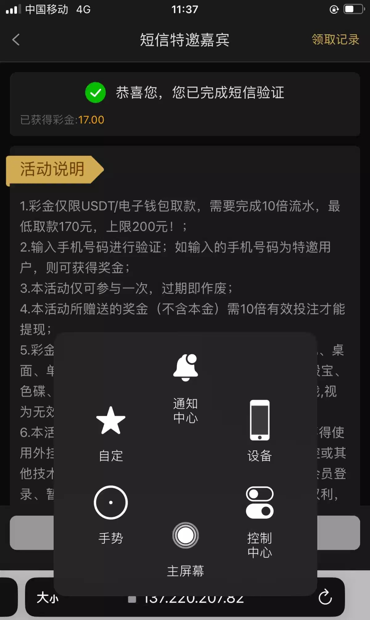 刚收到短信,优惠里面特邀自助领取17,我没打出来,可以去试试短信链接:https://rgshkbz.com/wkvh
