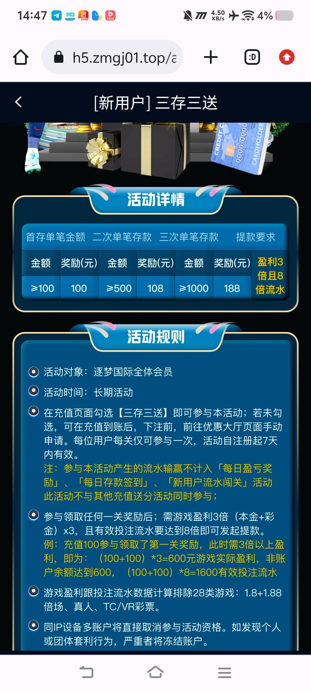 ✅ 100+100 下注前到优惠大厅自助申请