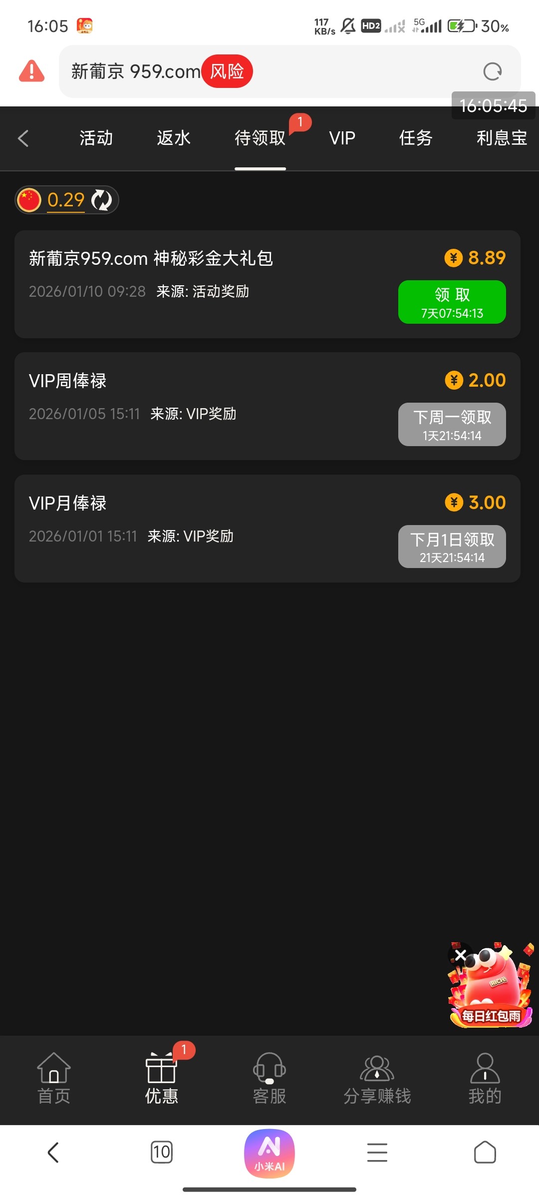 司马台子发神秘彩金了,有号的去看看有没有,一个多月没充值过,借呗还欠着呢