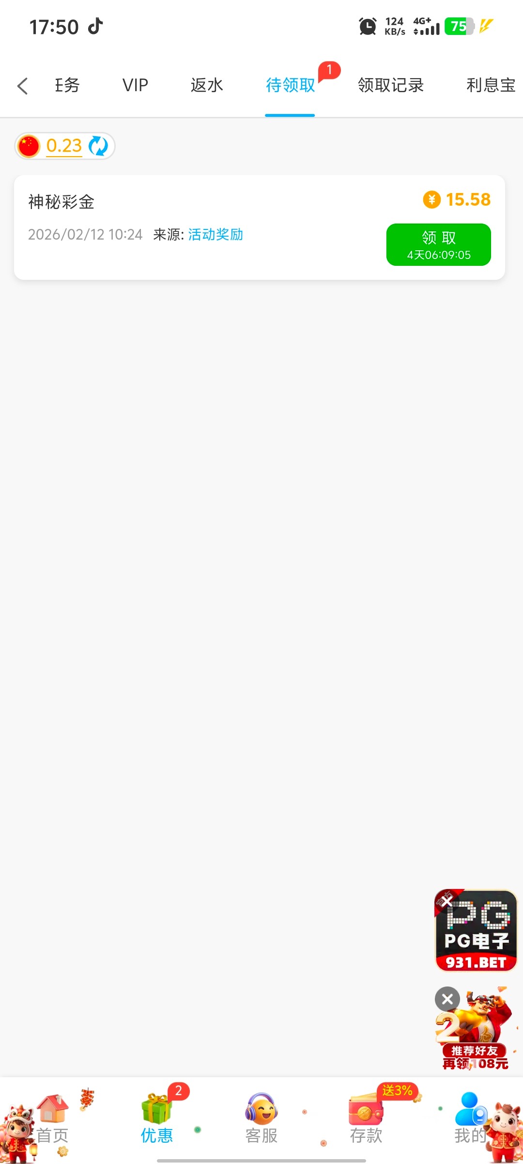 登上就有,我之前充过